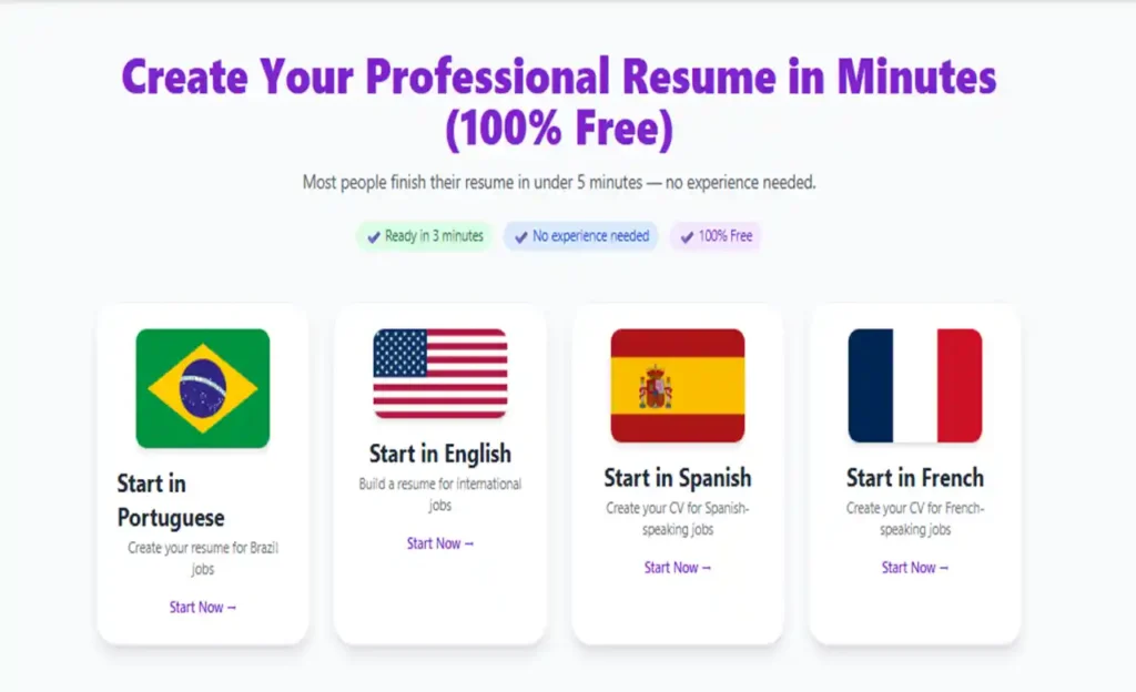 O que mudou: agora você pode criar currículo em 4 idiomas
